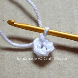• Round 2: Chain 3, yo twice and get ready to crochet a tr.