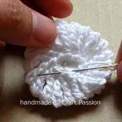 • Use a tapestry needle to sew the chain edge of the 2nd round to the wrong side of the first round slightly away from the center opening.