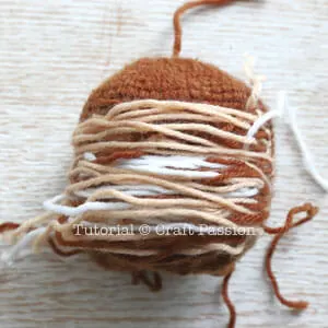 - Acrylic yarn (50 gram each ball): White, Black, Beige (or Light Khaki) and Brown (1 ball)