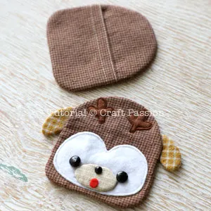 Cut out the eye-piece, the antlers, and the nose from felt.