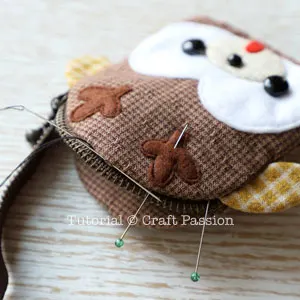Mark the position of the antler, face, and ears patterns on the purse that doesn’t have a pocket on it. You may mark by eyeballing position, trace the shape with an erasable fabric marker.
