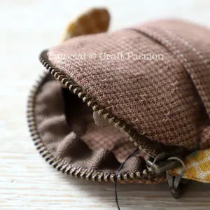 DiDi Deer Coin Purse is about a palm-sized coin purse with zipper closure (4″ x 3.25″), suitable for keeping loose coins and some cash notes. It has an open pocket at the back of the coin purse. However, if you prefer a larger size purse, you can always enlarge the template during printing and adjust the materials accordingly.