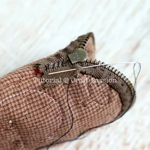 For the muzzle, instead of leaving an opening on the seam, make a one-inch slit on a layer of fabric of the muzzle for turning inside out.