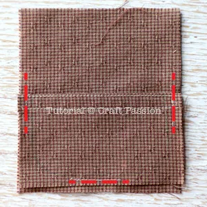 For making an open pocket at the back of the coin purse, provision of 3/4″ seam allowance at the top of the back pocket is needed. This is for double folding of the raw edge at the top of the open pocket.