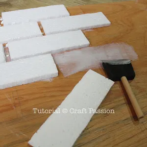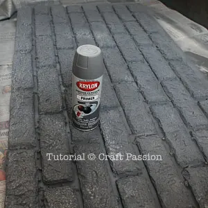 Spray a layer of primer onto the brick foam in a well-ventilated space / outdoor. Remember to place some old newspaper to prevent the paint from staining your floor or table.
