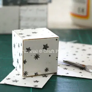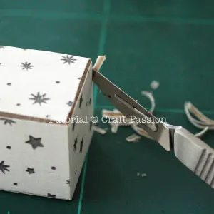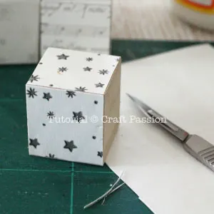 - Cut the paper around the cube with a craft knife, place the blade as near as possible to the cube so that you can cut along the edges.