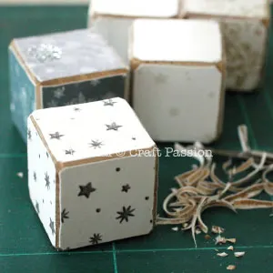 I am using Winter theme scrapbooking printed paper but you can use other designs to make the letter cubes for other occasions.
