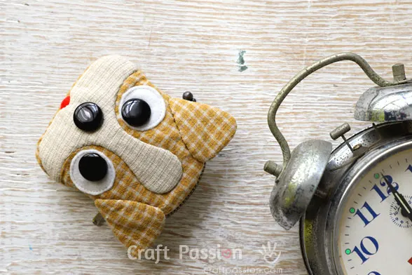 Hand-sew to attach the eyes and nose buttons respectively.