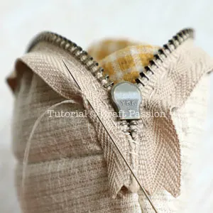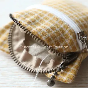 Repeat the same to the other zipper tape. Make sure the center of the purse is aligned after zipping up.