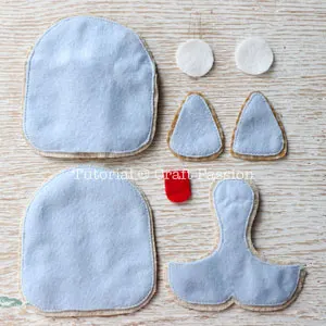 Cut 2 circle pieces from white felt as eye and tongue piece from red felt, no seam allowance is needed.