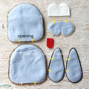 Cut out the eye and tongue pieces from the color felt fabric, no seam allowance is needed.