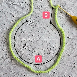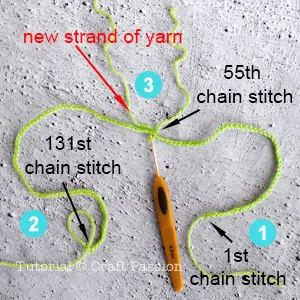 Mark-2 is the end of the base row, don't cut or fasten the yarn because you will need to continue to crochet it at the later part of the pattern.