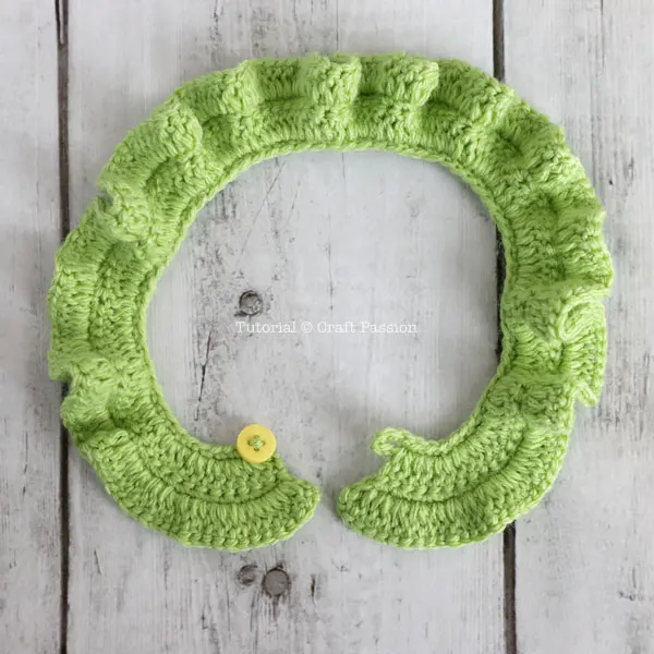 3. CROCHET RUFFLED SKIRT: crochet the chain base enough to wrap about the tummy of the stuffed animal and add 5 chain stitches for the button loop fastener.