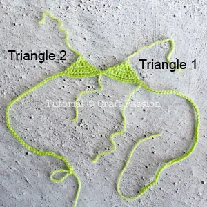 Follow the crochet pattern to crochet Triangle 1 of the bikini.