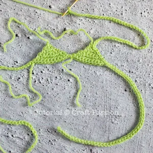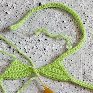 Follow the bikini crochet pattern to crochet Triangle 2 of the bikini.