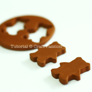 teddy bear shapeIf your clay is big enough, you can do 2 bears together. Otherwise, repeat the kneading, rolling and pressing on the balance clay.