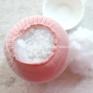Add some more poly stuffing material before pulling the thread to close the opening. The additional poly stuffing is used to prevent the beads from falling out from the small opening.