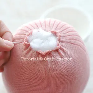 Stuff the sock densely with poly stuffing material followed by some stuffing beads.