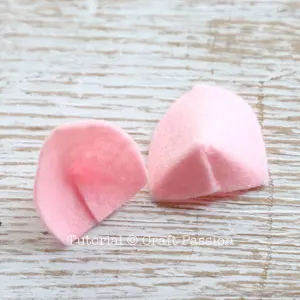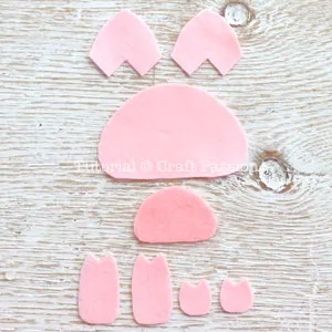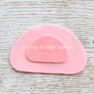 3. Trace the templates on the pink felts with a fabric marker. The darker pink felt is for the smaller snout, and the rest is on the light pink felt.