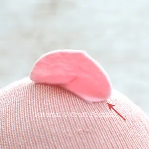 9. In order to make the ears pointing to the side at an angle, glue the side edge a little as shown in the picture.