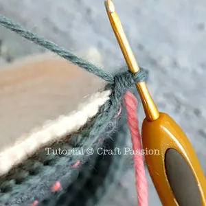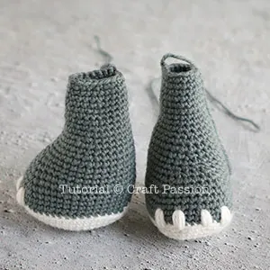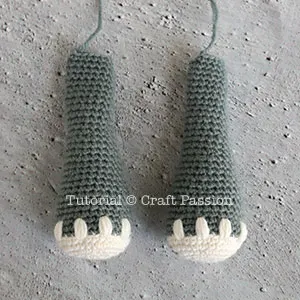 Sew 4 vertical short lines with 4 strands of yarn as toes.