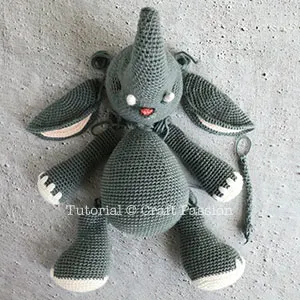 - Sew the ears and body to the head, followed by sewing arms, feet, and tail to the body to complete the elephant amigurumi.