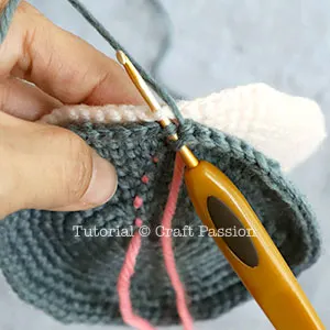Work body pattern until you completed round17. Change yarn to rainbow color.