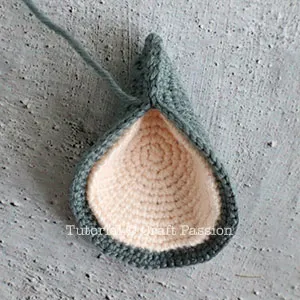 Add collar ruffles trim to the body at round37 by crochet the base of the ruffle piece to the body by using cyan yarn.