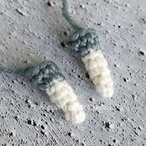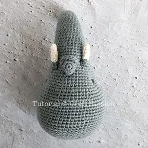 Followed by sewing the tusks between round 32 to 34, 7 stitches apart at the sides of the mouth.