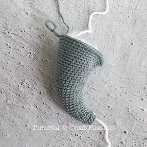 Followed by sewing the tusks between round 32 to 34, 7 stitches apart at the sides of the mouth.