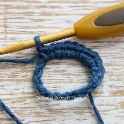 - Make 10 sc stitches onto the ring to start forming the eyeglasses' rim of the left side (Round 1),