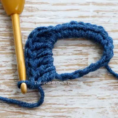 - Make 10 sc stitches, then slip stitch to the first sc stitch to complete the left rim.