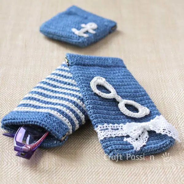 Adding an eyeglasses applique to an eyeglasses pouch is simply a perfect match. I designed this squeeze pouch crochet pattern some years ago and it was when I found the original crochet pattern of the applique.