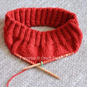 Work 2×2 rib (k2, p2) in round for 1″ (2.5cm).