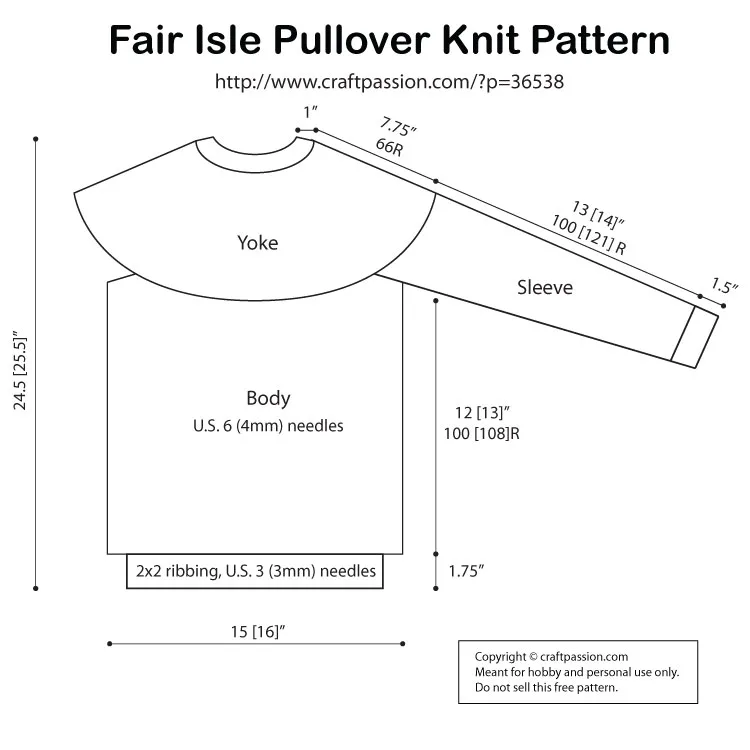 - Repeat the same on the sleeve to complete the Fair Isle pullover.
