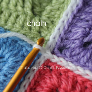 - Make a chain stitch to cross over the row joint and repeat the same whenever you need to cross the following row joints.