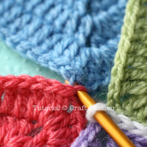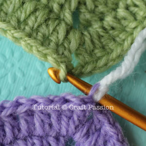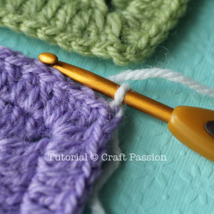 There are plenty of joining methods for the granny square, choose the best to suit your project. Perhaps I should make a roundup to show you some of those popular and commonly use joining methods. I hope this will come soon [Update: Click here to choose from the 12 ways to join your granny square]. Stay tuned! While waiting for that, please click page 2 for the detailed tutorial of this flap slip-stitch method.