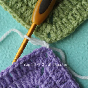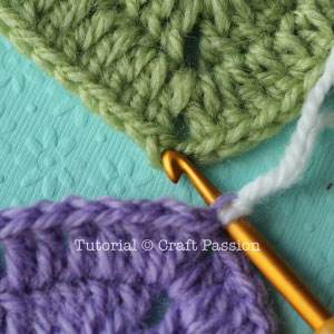 Note: If your squares have 2 chains at the corner (like mine), pick the chain stitch just before your first double crochet stitch on the edge that you are going to join.