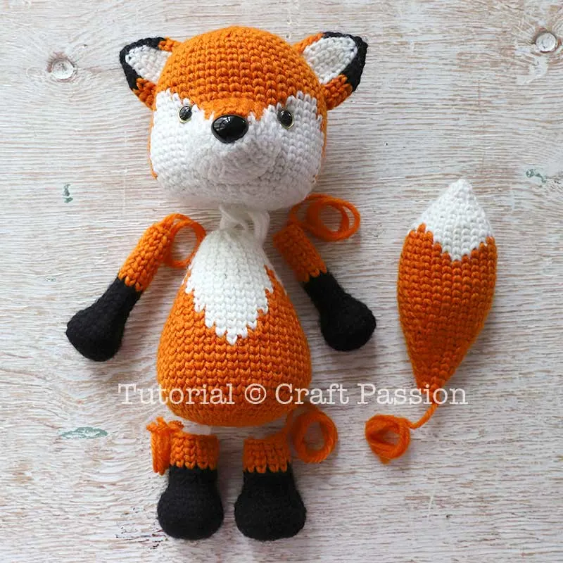 - Position all other parts together. First, sew the head to the body. Followed by the arms, legs, and tail respectively to complete Mr. Furu, the Amigurumi Fox.