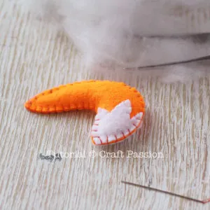 The pattern of the Freddy felt fox comes in 2 sizes, small 2.25″ x 2.25″, large 3.5″ x 3.5″. It has a rotatable tail. Just an idea of what to do with the felt fox after sewing them, you can hang them on nursery mobile, pram, and stroller, keychain, bag, etc. It will be a great handmade gift for your friend and family.