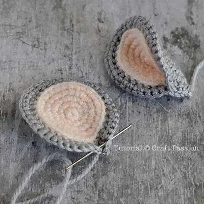 Mark the positions of the ears at Round 22, at the mid-height of the head. Pin and sew the ears to attach them to the head.