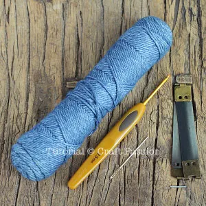 - Get ready all the materials and tools needed to crochet the flex frame pouch.