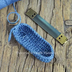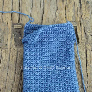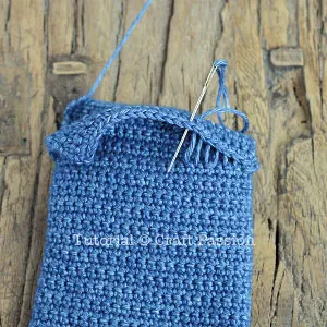 - Crochet each side of the marking to make a flap for the pouch. The flap is at least twice the height of the frame.