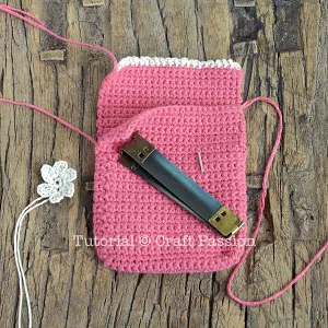The Glasses Pouch measures a 3 1/4″ x 6 3/4″ (8.5cm x 17cm) size, you can make it shorter to become a Coin Pouch which is 3 1/2″ in length.
