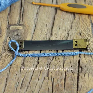 - Crochet a chain strip with 4 chains lesser than the length of the frame.