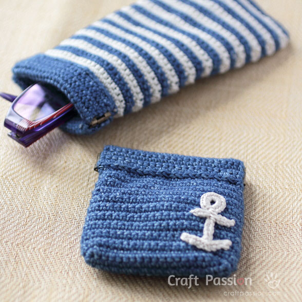 I just love the nautical set of them, a stripy glasses pouch with an anchor coin pouch.