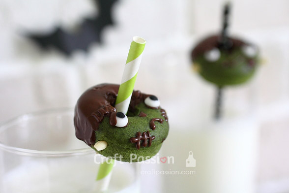 - Use a toothpick to spread a little chocolate from the top to make the bangs or forehead fringes of the Frankenstein. You can use the melted chocolate from the piping bag to draw the bangs too.