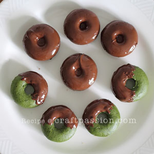 These Halloween Donut Treats are not only fun to make, great for display, but they are also delicious to eat too. The recipe of the mini donuts come in 3 flavors, matcha, chocolate and plain. The green tea matcha flavor baked mini donuts are used for decorating the Frankenstein. The chocolate flavor donuts are for spider and multi-eyed monster. Whilst the plain flavor donuts are used to make the bloody-mouth monster.