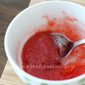 - Heat up 1-2 tablespoon of strawberry conserve or jam, mashed it down if it is chunky.