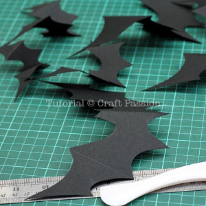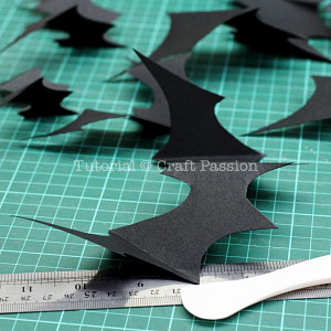 - Use a ruler and bone folder to make a crease line on the wings of the bats.